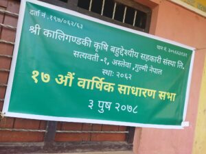 कालीगण्डकी कृषि बहुउद्देश्यीय सहकारी सस्था लिमिटेड सत्यवति गाउँपालिका वडा नम्बर १ अस्लेवा गुल्मीको १७ बार्षिक साधारणसभा सम्पन्न भएको छ ।