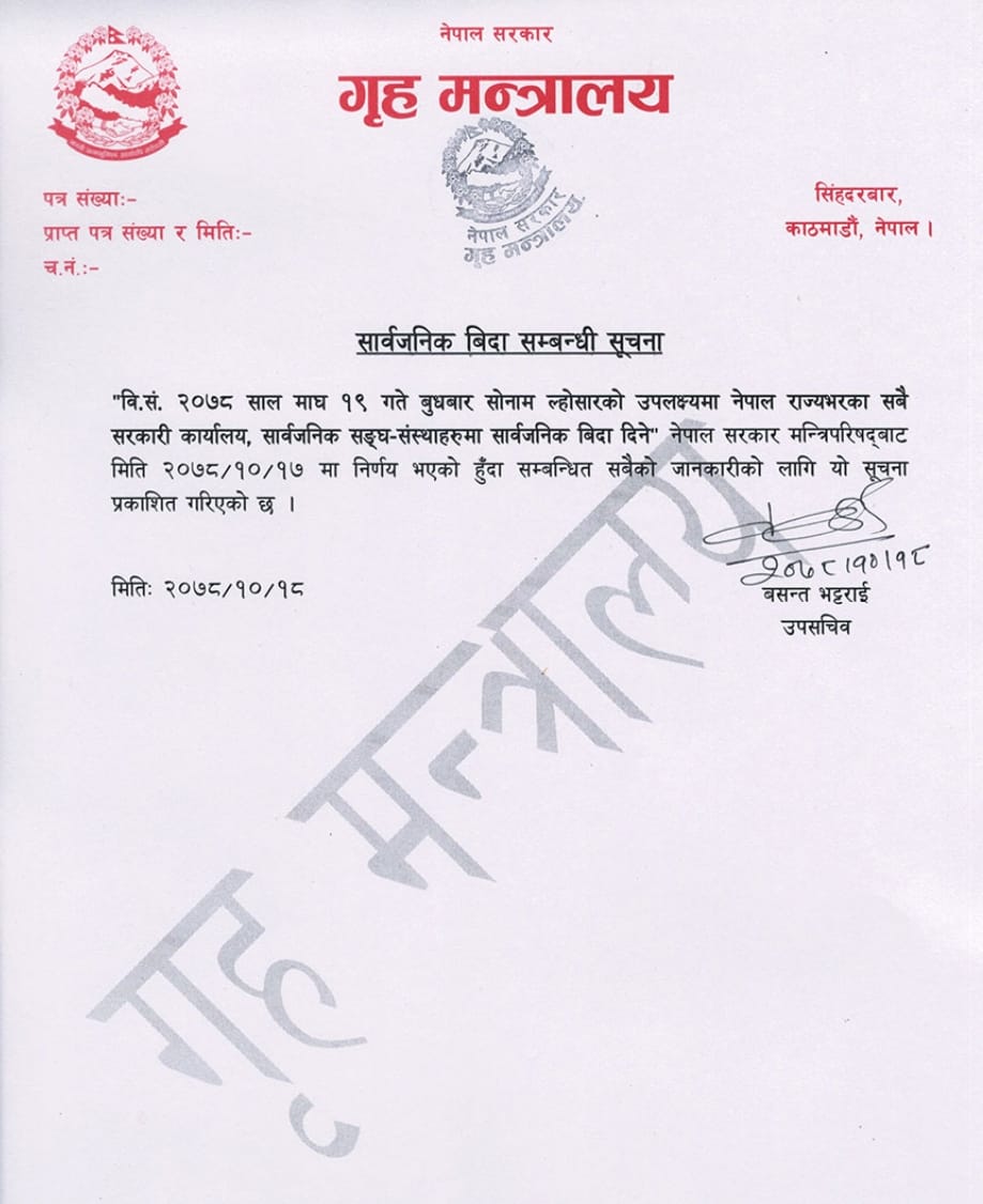 माघ १, २०७८ - गुल्मी - गुल्मीमा एक वृद्धाको शव खोलामा भेटिएको छ । जिल्लाको रेसुङ्गा नगरपालिका वडा नम्बर ४ अर्खलेका ८४ वर्षिय खिमान्द गौतमको शव अर्खले खोलामा अर्ध पानीमा भेटिएकोे जिल्ला प्रहरी कार्यालय गुल्मीका प्रहरी उपरीक्षक गोपालचन्द्र भण्टराईले जानकारी दिए ।उनी माघ १८...